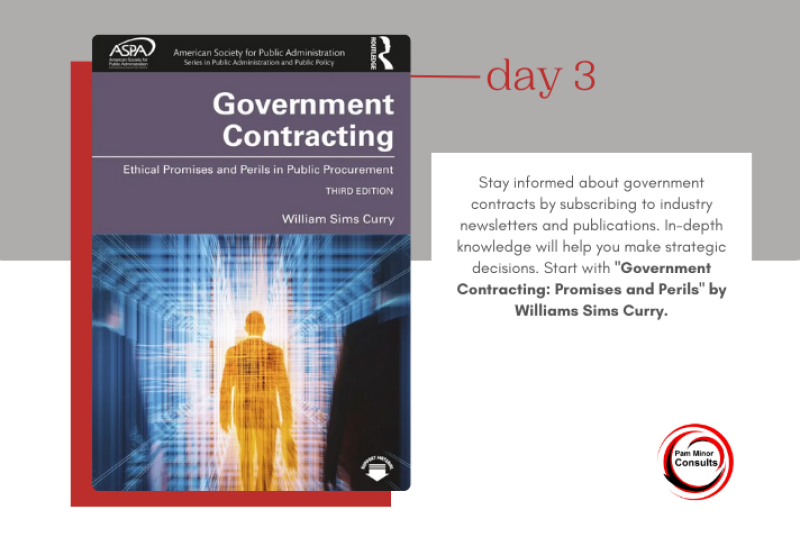 Stay informed about government contracts by subscribing to industry newsletters and publications. In-depth knowledge will help you make strategic decisions. Start with "Government Contracting: Promises and Perils" by Williams Sims Curry.