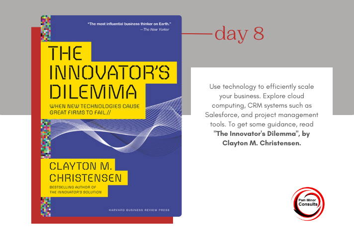 Use technology to efficiently scale your business. Explore cloud computing, CRM systems such as Salesforce, and project management tools. To get some guidance, read "The Innovator's Dilemma", by Clayton M. Christensen. [Amazon.com: The Innovator's Dilemma: When New Technologies Cause Great Firms to Fail (Management of Innovation and Change) eBook : Christensen, Clayton M.: Kindle Store]